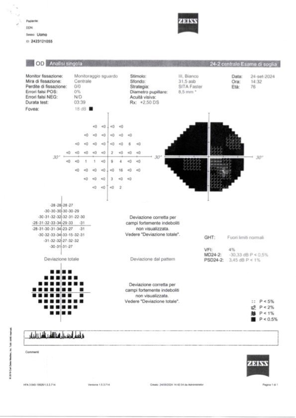 Fino ad ora questa persona ha effettuato un singolo ciclo di 6 giorni di agopuntura presso il mio studio privato a Carpi ed il campo visivo parla da sé. La persona effettuerà altri sei giorni del metodo di agopuntura Boel-Yamamoto-Ferraro ed ovviamente se farà un altro campo visivo lo troverete sempre sul sito.